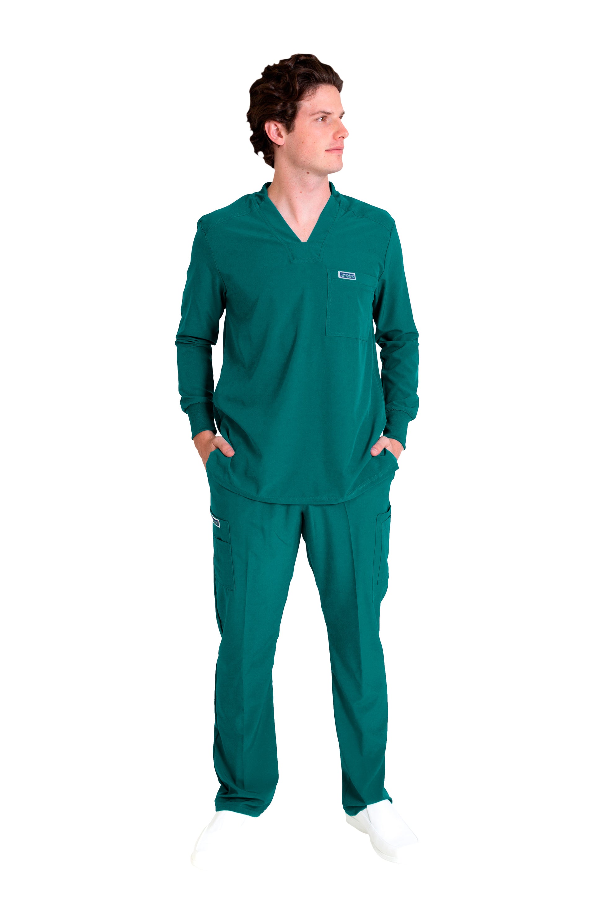 - TELA – STRETCH FLEX-DRY-DYNAMIC – 96% Poliéster y 4% Elastáno con Tecnología de Repelencia a los fluidos. Nuestros productos no tienen “bolitas” ni arrugas, siendo una prenda con un tacto espectacular y una vista aún mejor. Sus bolsas te permiten tener siempre a la mano tus accesorios y herramientas de trabajo como el estetoscopio, para que siempre estés preparado/a.