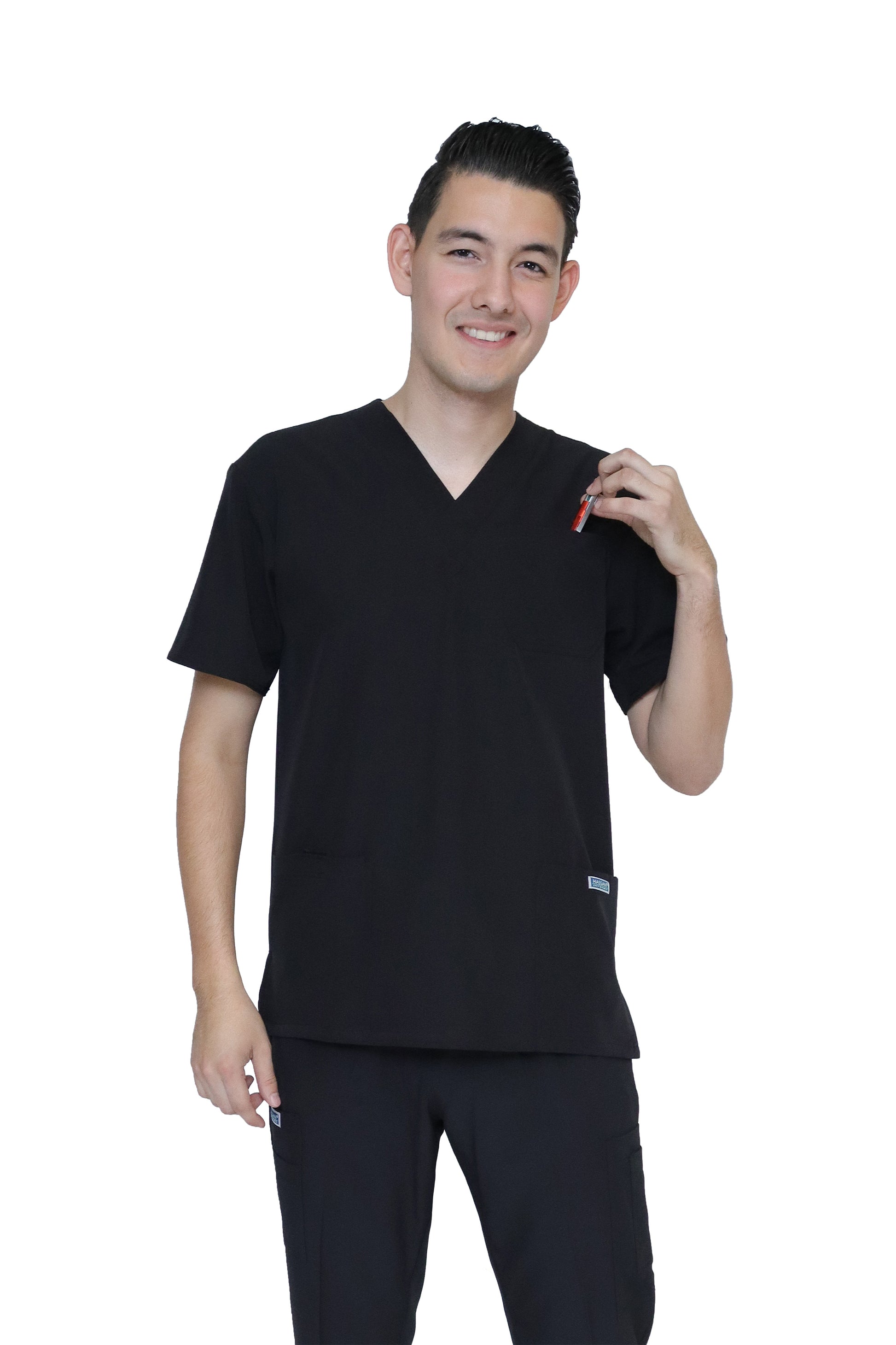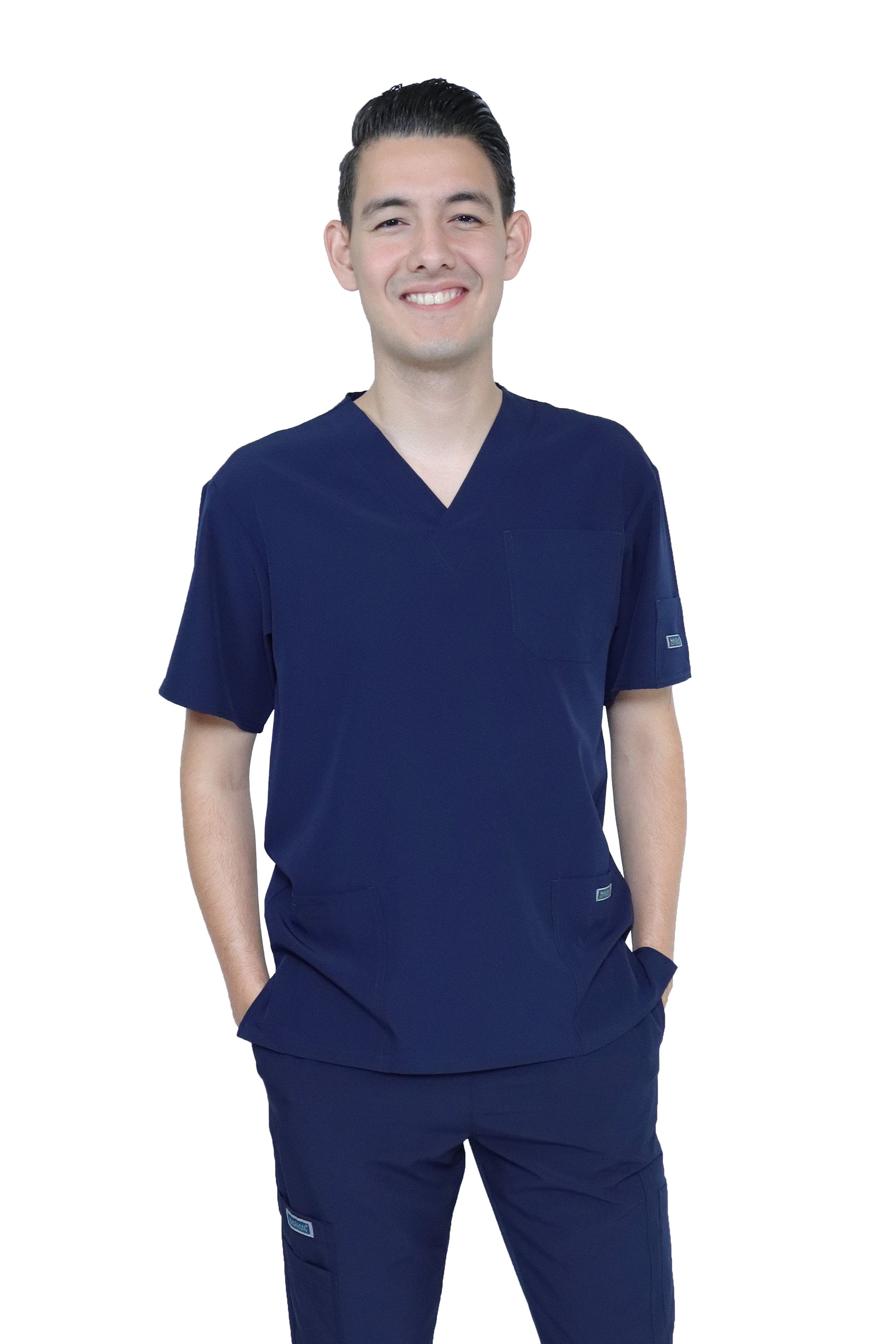 - TELA – DOBLE STRETCH FLEX-DRY-DYNAMIC – 96% Poliéster y 4% Elastáno con Tecnología de Repelencia a los fluidos. Nuestros productos no tienen “bolitas” ni arrugas, siendo una prenda con un tacto espectacular y una vista aún mejor. Sus bolsas te permiten tener siempre a la mano tus accesorios y herramientas de trabajo como el estetoscopio, para que siempre estés preparado/a.