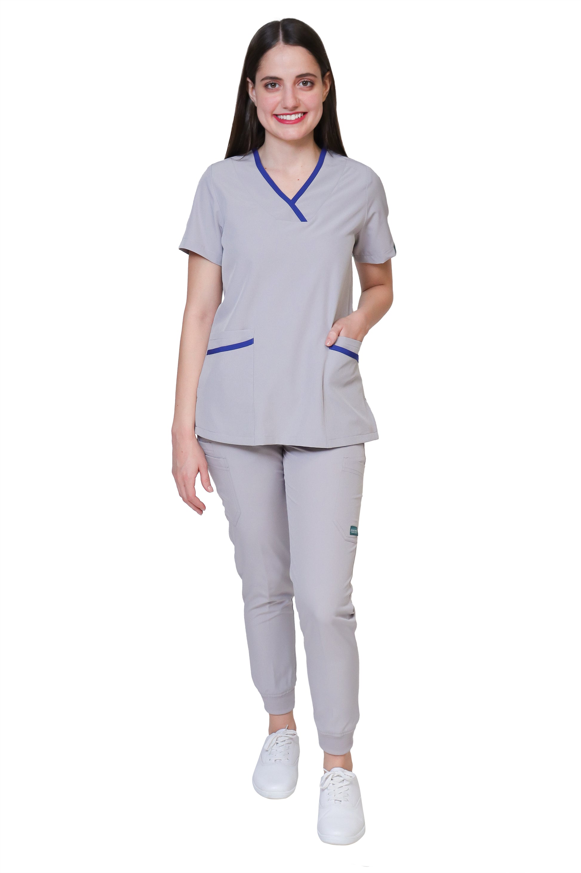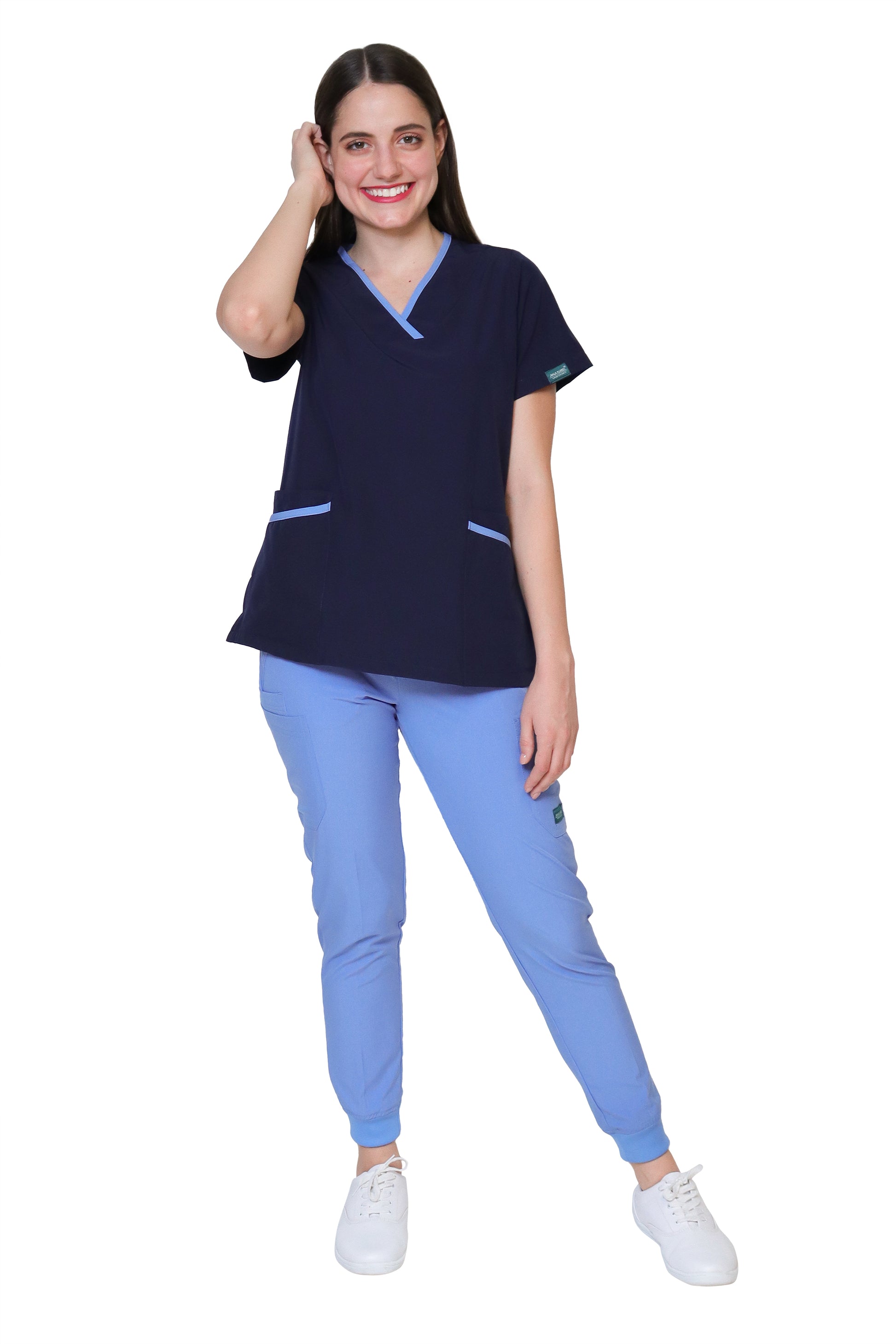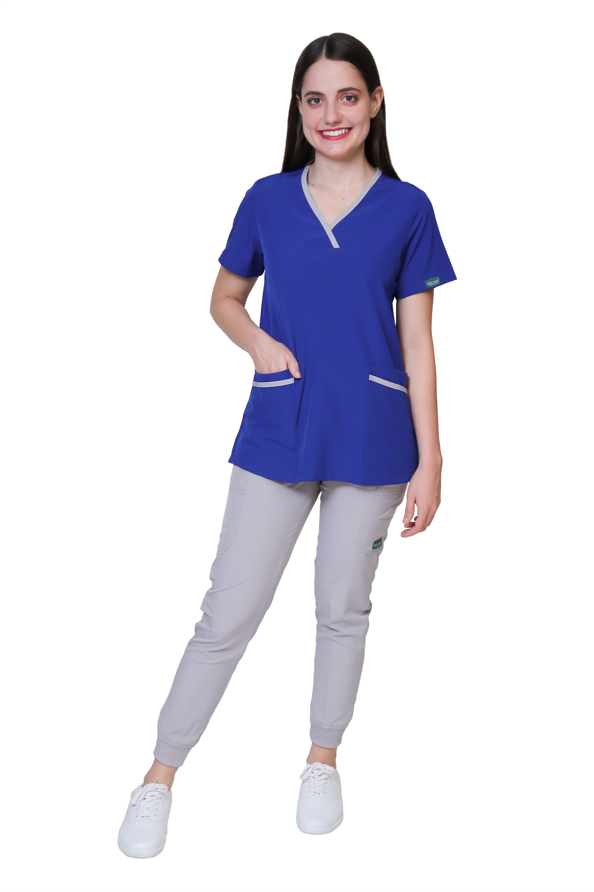 - TELA – STRETCH FLEX-DRY-DYNAMIC – 96% Poliéster y 4% Elastáno con Tecnología de Repelencia a los fluidos. Nuestros productos no tienen “bolitas” ni arrugas, siendo una prenda con un tacto espectacular y una vista aún mejor. Sus bolsas te permiten tener siempre a la mano tus accesorios y herramientas de trabajo como el estetoscopio, para que siempre estés preparado/a.