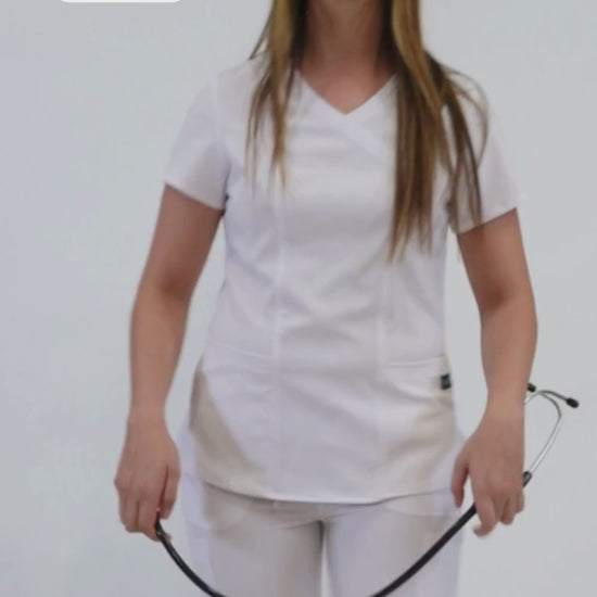 - TELA – STRETCH FLEX-DRY-DYNAMIC – 96% Poliéster y 4% Elastáno con Tecnología de Repelencia a los fluidos. Nuestros productos no tienen “bolitas” ni arrugas, siendo una prenda con un tacto espectacular y una vista aún mejor. Sus bolsas te permiten tener siempre a la mano tus accesorios y herramientas de trabajo como el estetoscopio, para que siempre estés preparado/a.
