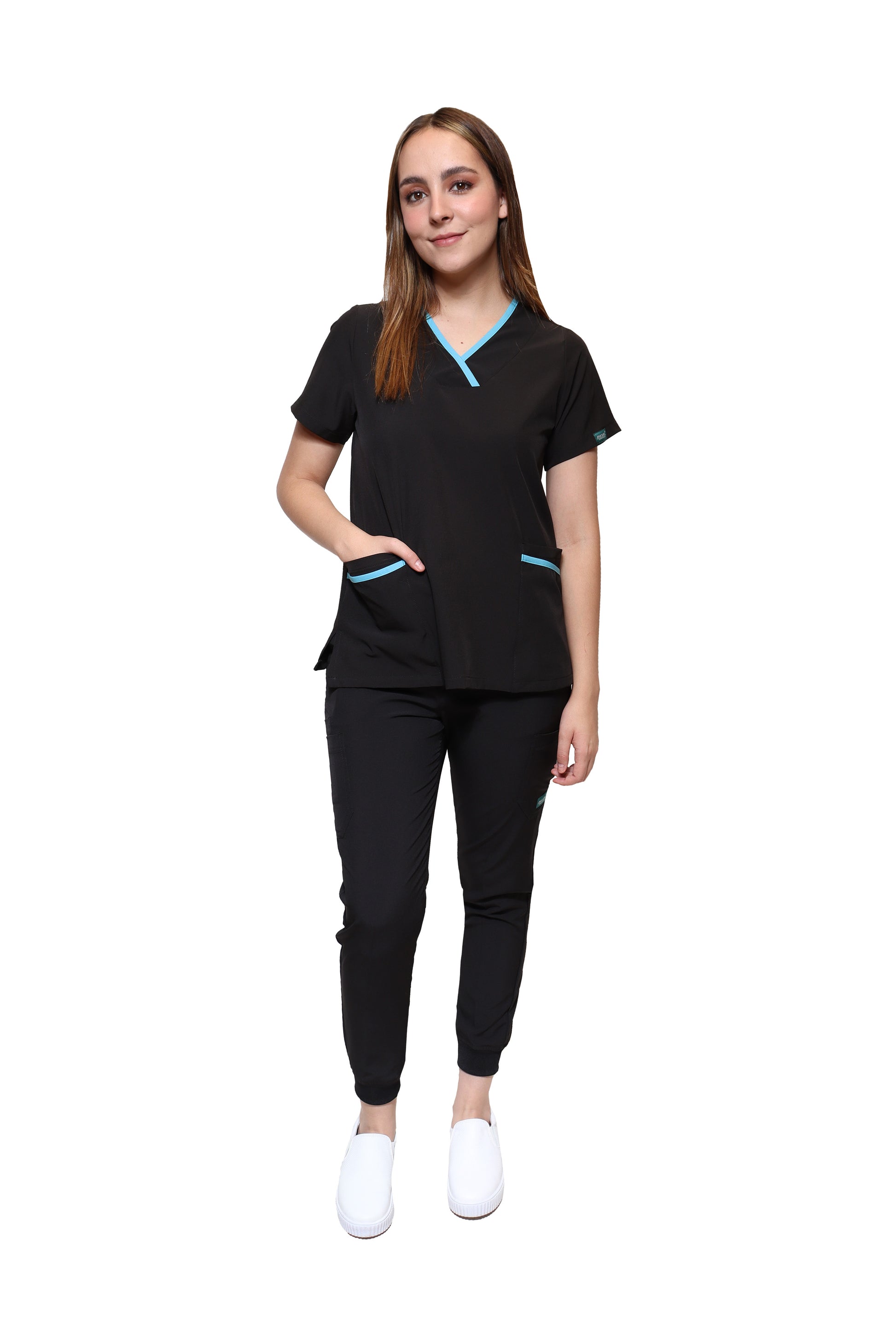 - TELA – STRETCH FLEX-DRY-DYNAMIC – 96% Poliéster y 4% Elastáno con Tecnología de Repelencia a los fluidos. Nuestros productos no tienen “bolitas” ni arrugas, siendo una prenda con un tacto espectacular y una vista aún mejor. Sus bolsas te permiten tener siempre a la mano tus accesorios y herramientas de trabajo como el estetoscopio, para que siempre estés preparado/a.