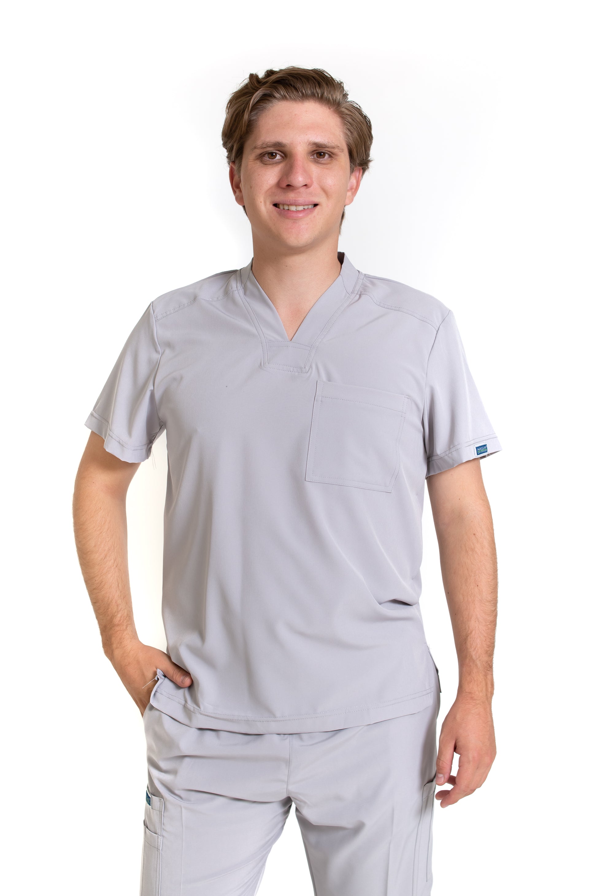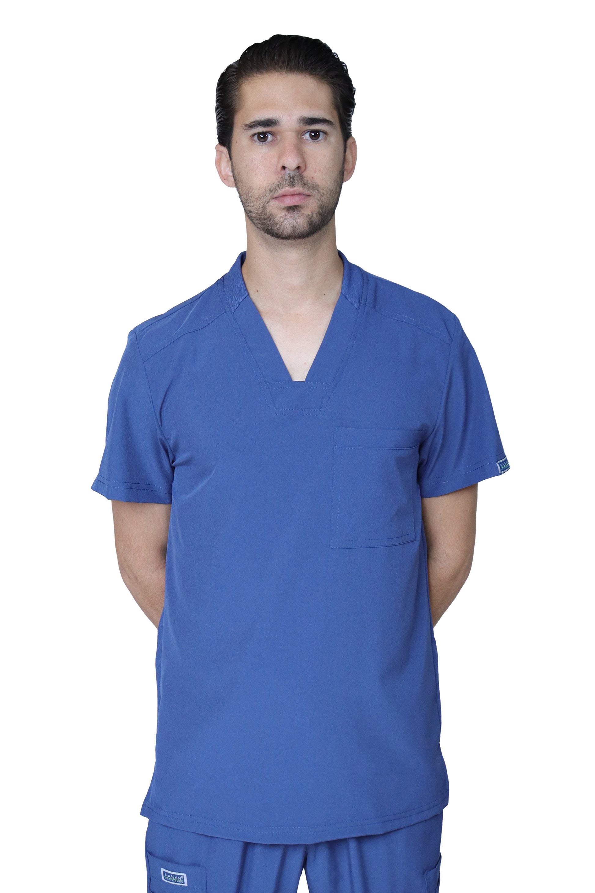 - TELA – STRETCH FLEX-DRY-DYNAMIC – 96% Poliéster y 4% Elastáno con Tecnología de Repelencia a los fluidos. Nuestros productos no tienen “bolitas” ni arrugas, siendo una prenda con un tacto espectacular y una vista aún mejor. Sus bolsas te permiten tener siempre a la mano tus accesorios y herramientas de trabajo como el estetoscopio, para que siempre estés preparado/a.