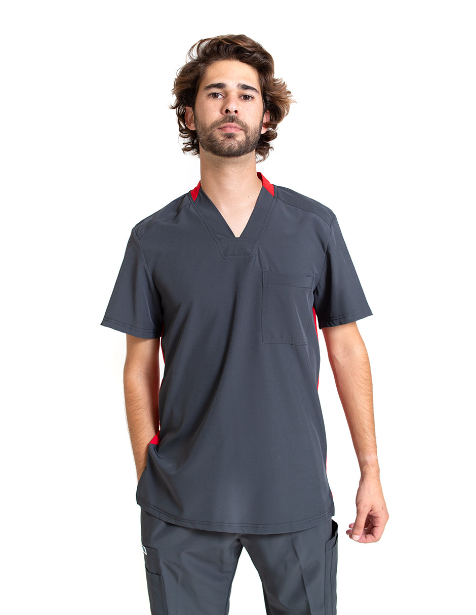 - TELA – STRETCH FLEX-DRY-DYNAMIC – 96% Poliéster y 4% Elastáno con Tecnología de Repelencia a los fluidos. Nuestros productos no tienen “bolitas” ni arrugas, siendo una prenda con un tacto espectacular y una vista aún mejor. Sus bolsas te permiten tener siempre a la mano tus accesorios y herramientas de trabajo como el estetoscopio, para que siempre estés preparado/a.