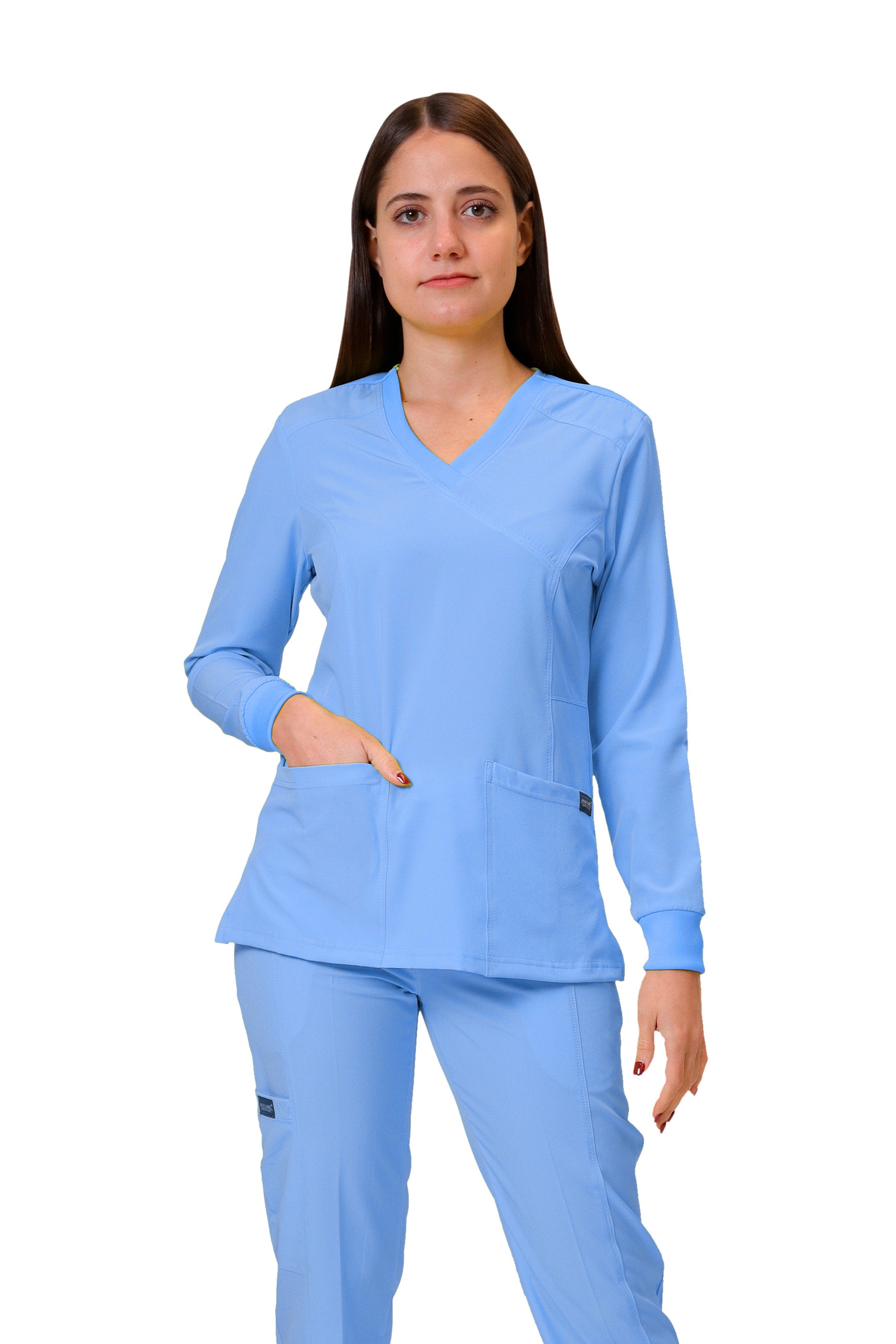- DISEÑO DE FILIPINA - Filipina con tecnología repelente a los fluidos, corte moderno,sport y profesional; MANGA LARGA y cuello en "V" con 2 amplias bolsas delanteras. Hermoso y juvenil corte con silueta. La composición textil de esta filipina es 96% Poliéster y 4% Elastáno para que ambos materiales creen una prenda muy cómoda y duradera.