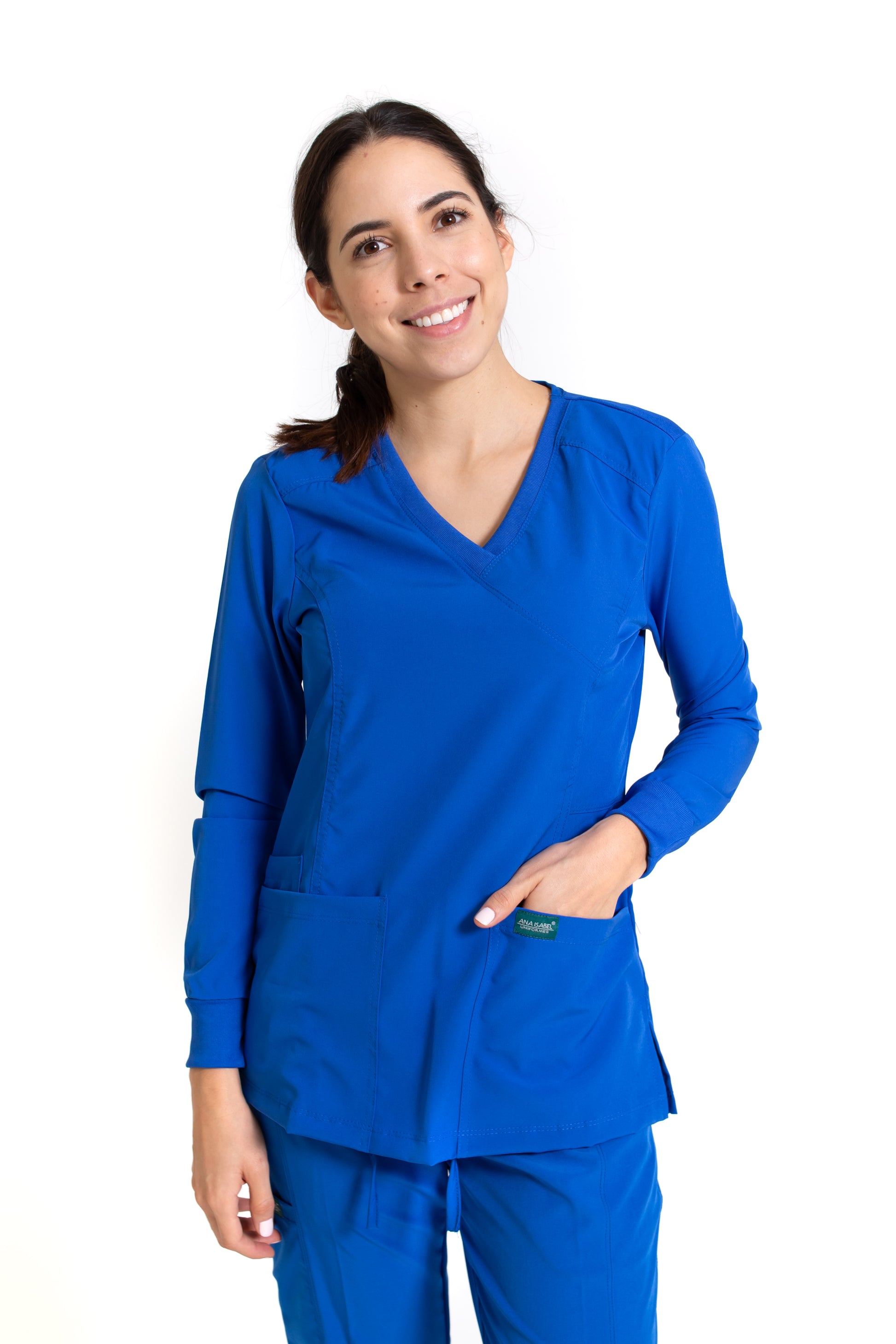 - TELA – STRETCH FLEX-DRY-DYNAMIC – 96% Poliéster y 4% Elastáno con Tecnología de Repelencia a los fluidos. Nuestros productos no tienen “bolitas” ni arrugas, siendo una prenda con un tacto espectacular y una vista aún mejor. Sus bolsas te permiten tener siempre a la mano tus accesorios y herramientas de trabajo como el estetoscopio, para que siempre estés preparado/a.
