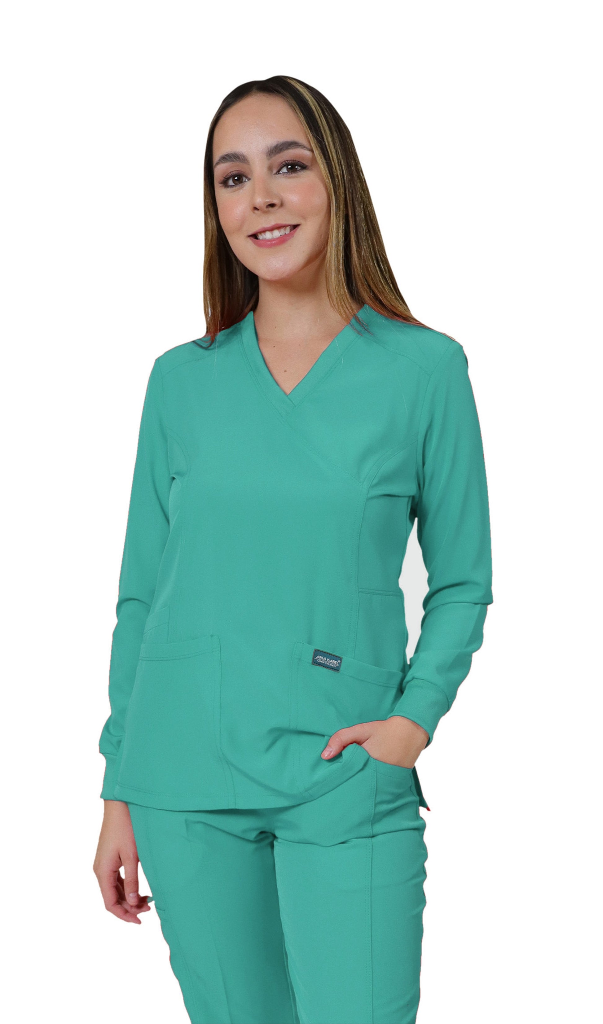 - DISEÑO DE FILIPINA - Filipina con tecnología repelente a los fluidos, corte moderno, sport y profesional; MANGA LARGA y cuello en "V" con 2 amplias bolsas delanteras. Hermoso y juvenil corte con silueta. La composición textil de esta filipina es 96% Poliéster y 4% Elastáno para que ambos materiales creen una prenda muy cómoda y duradera.