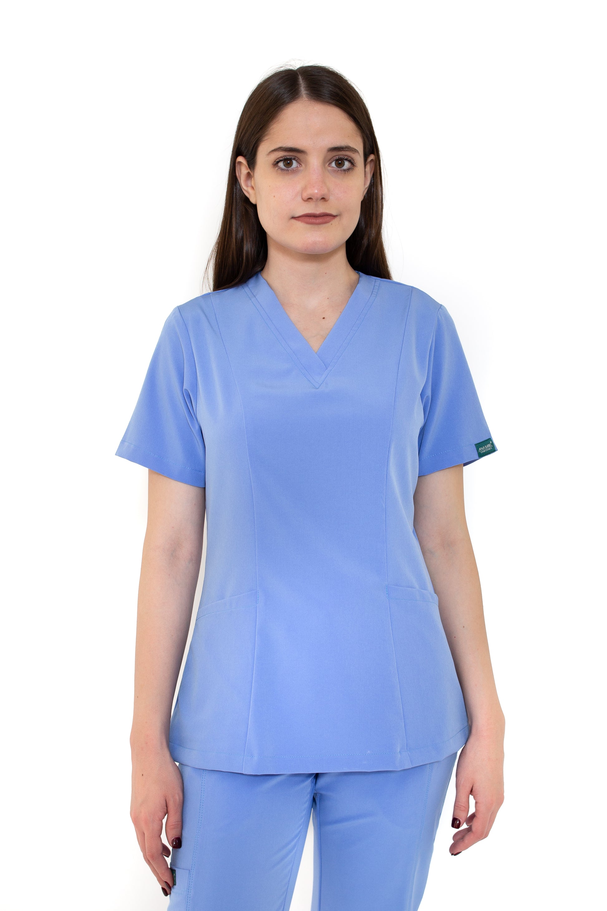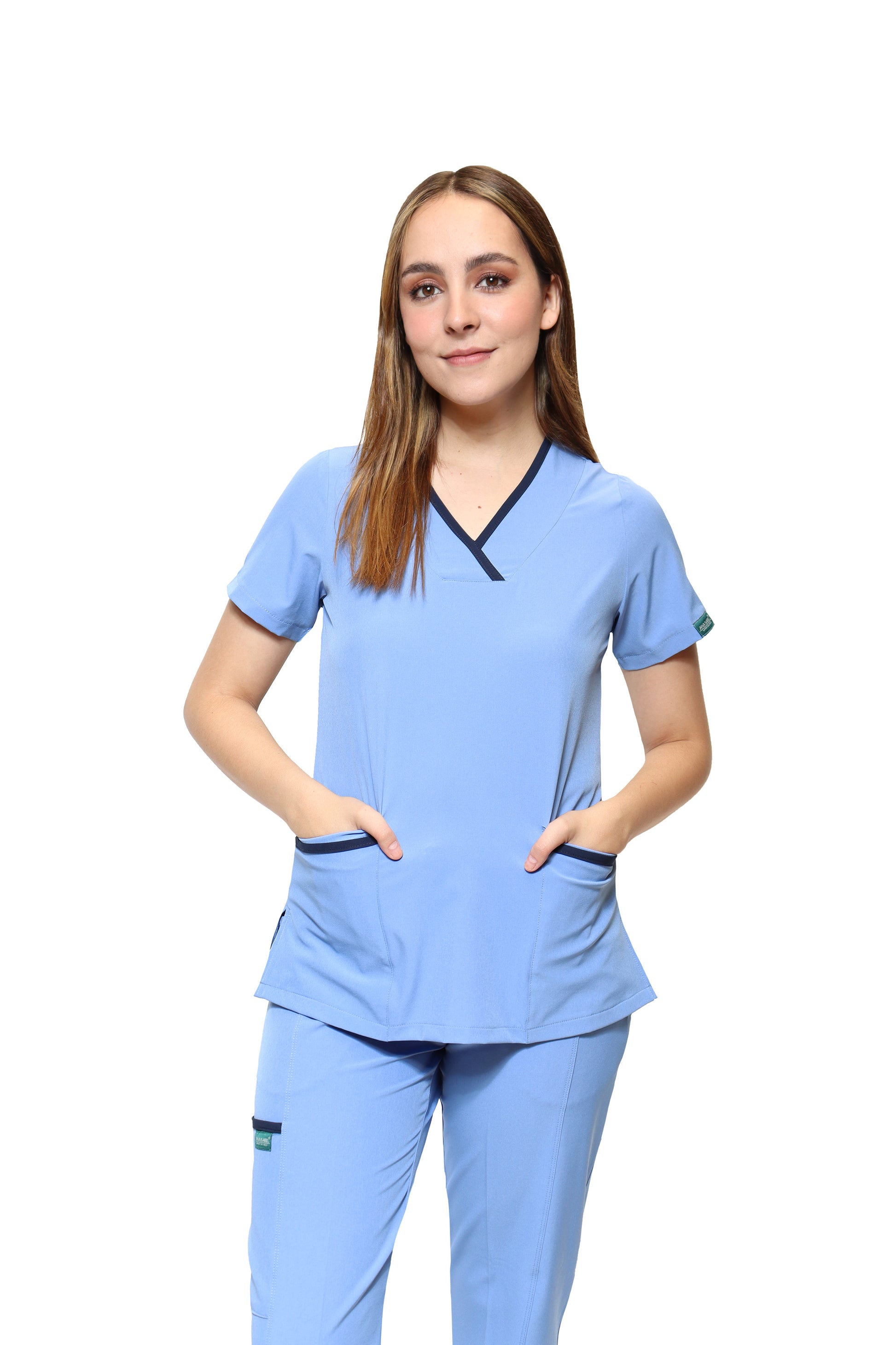 - TELA – STRETCH FLEX-DRY-DYNAMIC – 96% Poliéster y 4% Elastáno con Tecnología de Repelencia a los fluidos. Nuestros productos no tienen “bolitas” ni arrugas, siendo una prenda con un tacto espectacular y una vista aún mejor. Sus bolsas te permiten tener siempre a la mano tus accesorios y herramientas de trabajo como el estetoscopio, para que siempre estés preparado/a.