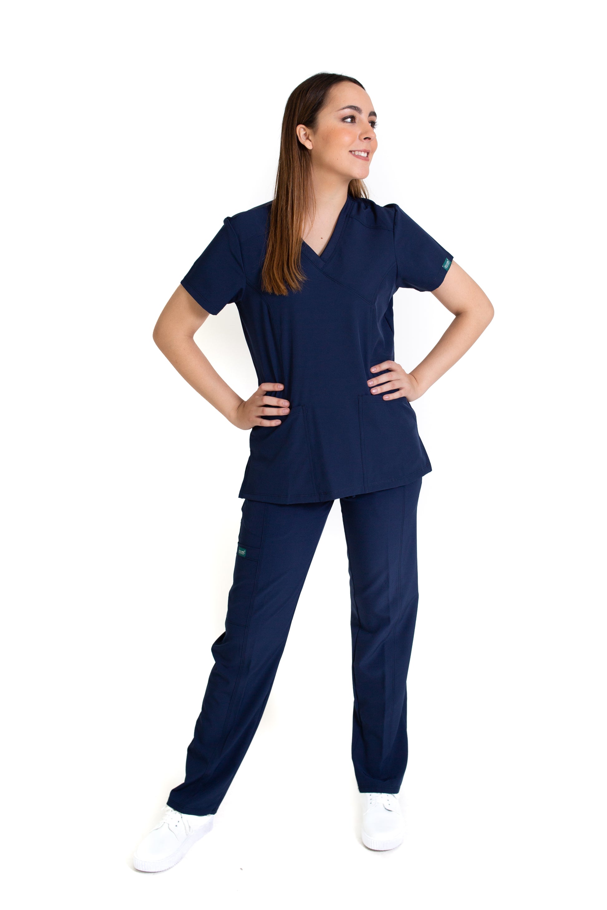 - TELA – STRETCH FLEX-DRY-DYNAMIC – 96% Poliéster y 4% Elastáno con Tecnología de Repelencia a los fluidos. Nuestros productos no tienen “bolitas” ni arrugas, siendo una prenda con un tacto espectacular y una vista aún mejor. Sus bolsas te permiten tener siempre a la mano tus accesorios y herramientas de trabajo como el estetoscopio, para que siempre estés preparado/a.